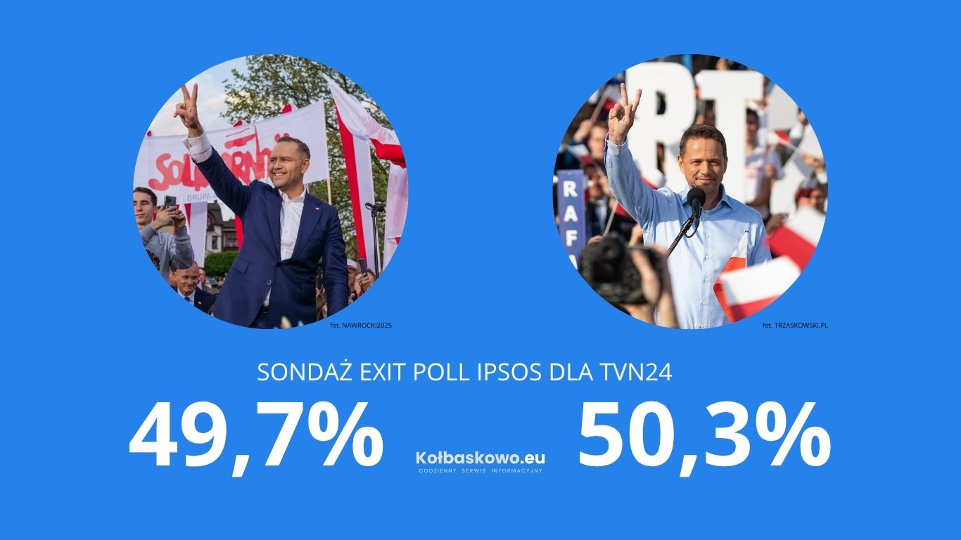W niedzielny wieczór zakończyło się głosowanie w II turze wyborów prezydenckich. Z danych sondażu Exit Poll przygotowanego przez IPSOS wynika, że Rafał Trzaskowski zdobył 50,3% głosów, pokonując minimalnie Karola Nawrockiego, który uzyskał 49,7%. Przewaga 0,6 punktu procentowego oznacza niezwykle wyrównany wyścig i świadczy o potężnej mobilizacji wyborców po obu stronach sceny politycznej.