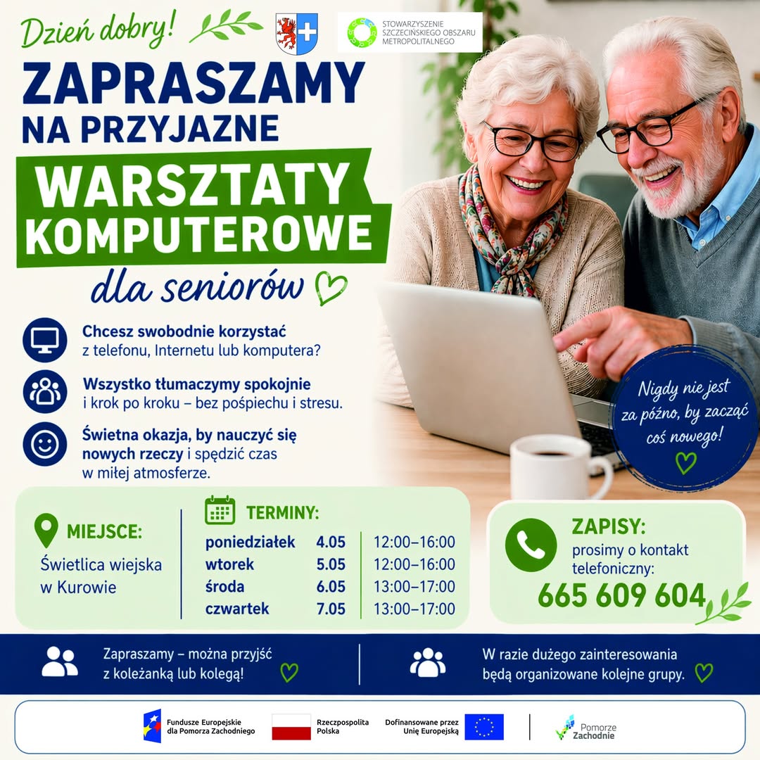 Seniorze, chcesz wejść w cyfrowy świat? Nauczyć się obsługi telefonu, internetu i komputera? W Kurowie ruszają majowe warsztaty, które pomogą zdobyć te umiejętności w spokojnej i przyjaznej atmosferze.
