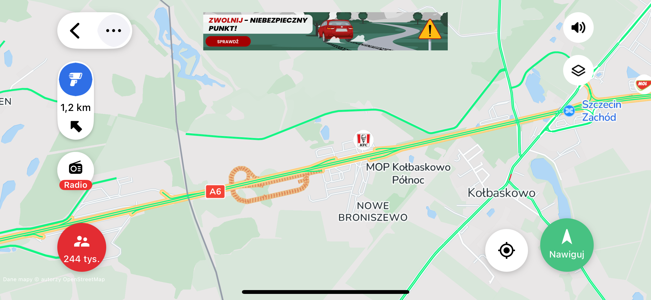 Planowany przebieg obwodnicy jest już widoczny w aplikacji Yanosik, co pozwala kierowcom zapoznać się z układem przyszłej trasy. W aplikacji widać też planowany przebieg "zawrotki" na granicy w Kołbaskowie.