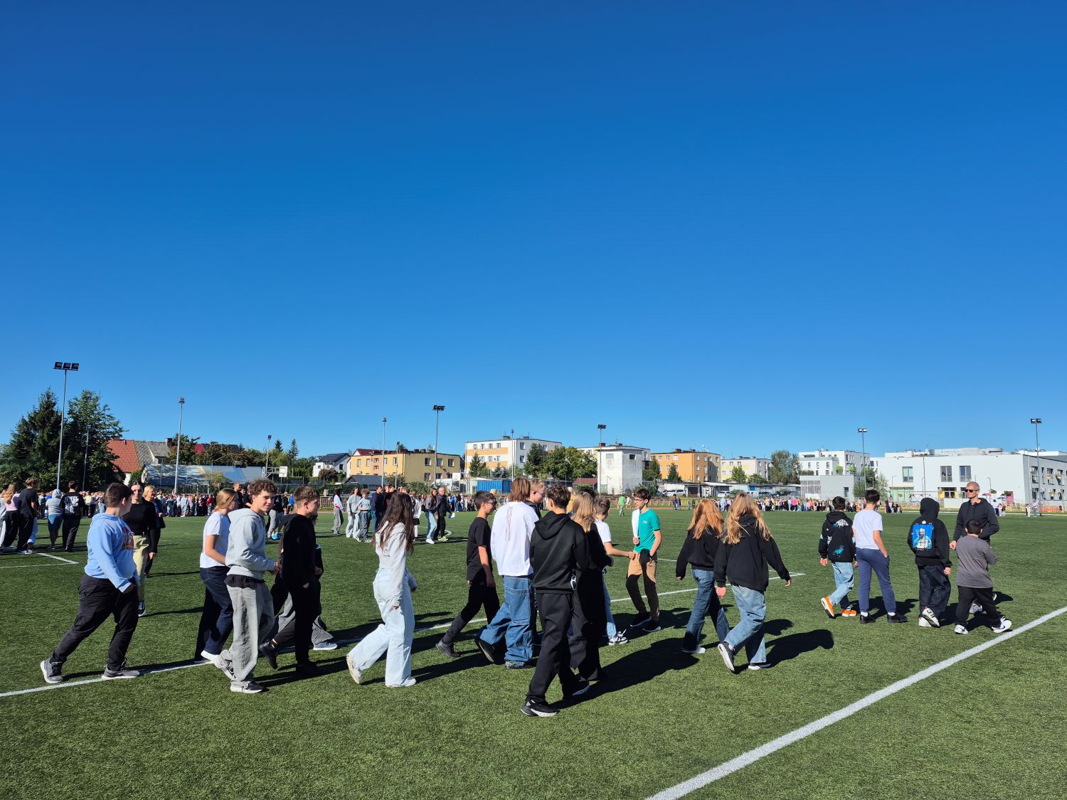 Alarm w szkole zwiastowały trzy następujące po sobie dzwonki i uruchomiona przenośna syrena. Po sygnale 772 uczniów zostało przez nauczycieli wyprowadzonych z trzypiętrowego budynku 18 wyjściami ewakuacyjnymi.