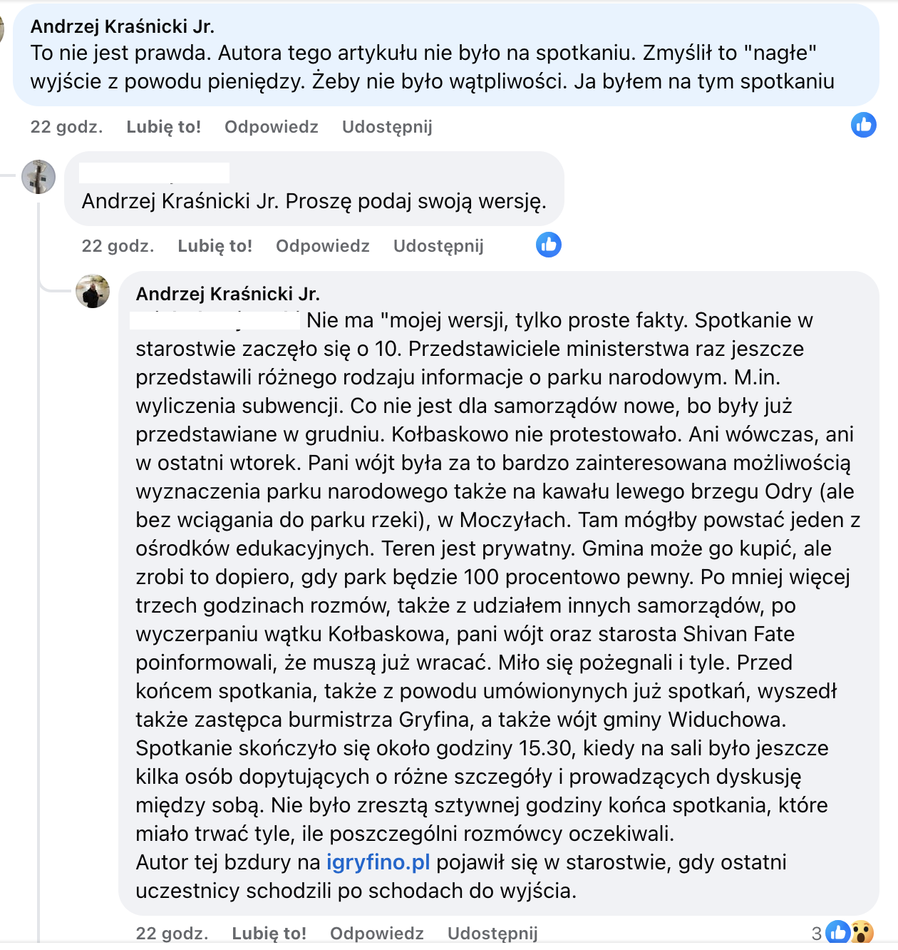 Informacje te potwierdza w komentarzu na facebookowej grupie Spotted: Kołbaskowo dziennikarz Gazety Wyborczej Andrzej Kraśnicki Jr.