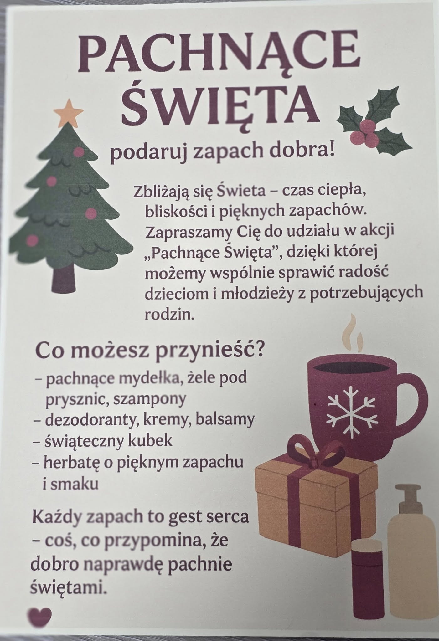 Gminny Ośrodek Pomocy Społecznej w Rosówku ogłasza akcję „Pachnące Święta”. Jej celem jest zebranie kosmetyków oraz artykułów higienicznych dla dzieci i młodzieży z rodzin znajdujących się w trudnej sytuacji życiowej.