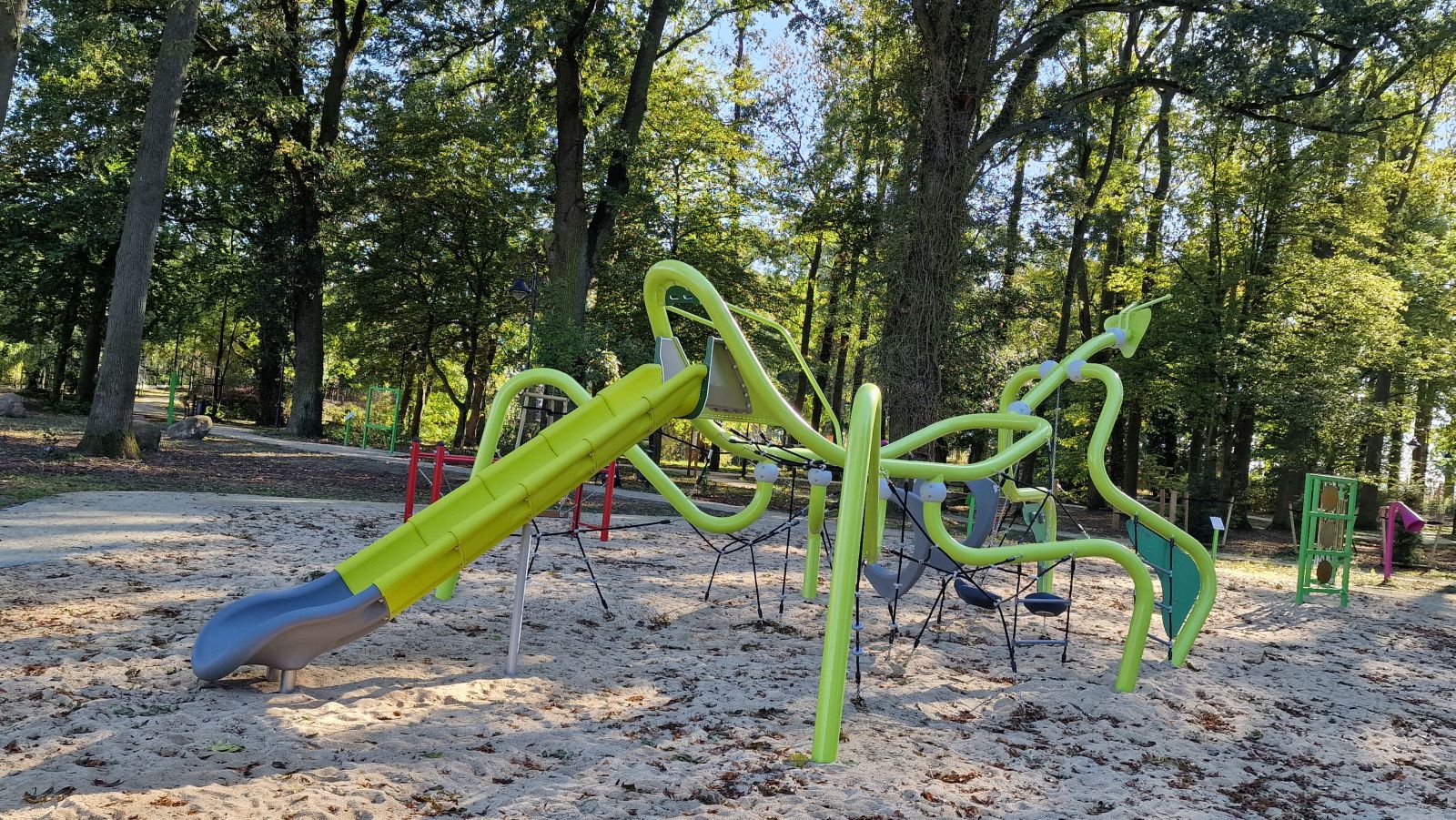 Nowe elementy małej architektury znacząco uatrakcyjniły przestrzeń. Centralnym punktem jest przepiękna altana ślubów. W parku znalazło się także zadaszone palenisko z efektowną pompą wodną. Dla najmłodszych przygotowano wyjątkowy plac zabaw z kolorową modliszką, wyposażony w zjeżdżalnię, drabinki i różne przeplotnie. Atrakcją jest także tyrolka, a dla starszych - strefa z hamakami.