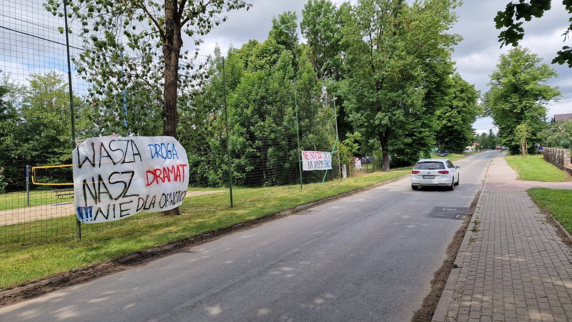 Tę sugestię potwierdza baner z napisem „Chcecie drogi, dajcie ekrany”, zawieszony na płocie ostatniego domu we wsi od strony Stobna. Co w tym temacie mówi rzecznik dyrekcji dróg?