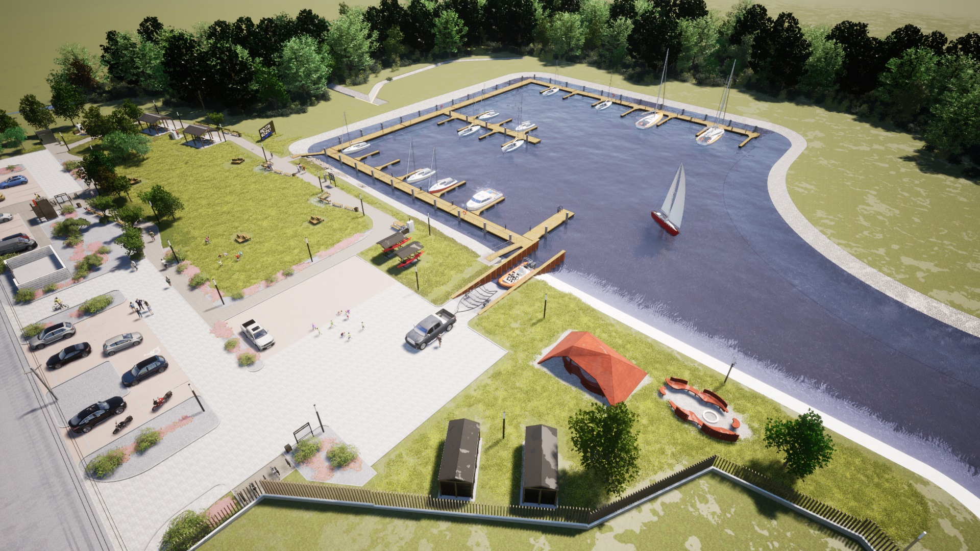 Nowa marina w Moczyłach ma być wkomponowana w naturalny krajobraz i przyjąć formę zatoki. W ramach inwestycji powstanie basen przystani z kanałem wewnętrznym, pływające pomosty, slip do wodowania jednostek, a także umocnienia hydrotechniczne oraz oznakowanie nawigacyjne. Dodatkowo projekt zakłada stworzenie strefy rekreacyjnej z altanami piknikowymi, miejscami na ognisko, ławkami, tablicami informacyjnymi oraz zielenią. Powstaną również miejsca postojowe oraz toaleta. Całość dopełni oświetlenie parkowe i nowe nasadzenia.