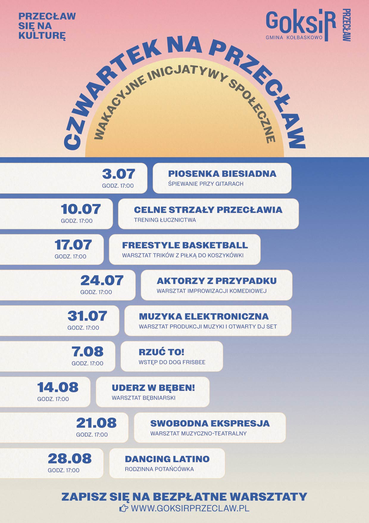 Lato w naszej gminie to czas pełen pomysłów i dobrej zabawy! To właśnie z kreatywności i lokalnych pasji narodził się cykl „Czwartek na Przecław” – wakacyjne spotkania w GOKSiR, które łączą radość, ruch i wspólne spędzanie czasu. Już dziś o godz. 17 kolejna odsłona – Freestyle Basketball!